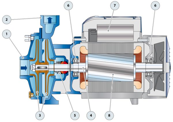 * The above diagram shows an internal view of a Pedrollo centrifugal water pump’s parts
